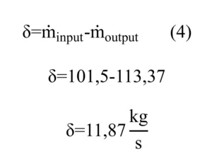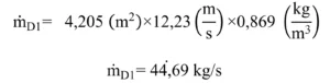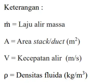 Untuk mencek keakuratan kecepatan alir digunakan perbandingan laju alir masa. Seharusnya jumlah laju alir masa di D1 ditambahkan dengan D2 sama dengan laju alir masa di stack. Laju alir massa dapat dari persamaan 3