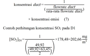 Untuk menghitung konsentrasi tiap duct diguanakn perbandingan dengan asumsi masa emisi di tiap duct sama, digunakan persamaan 7